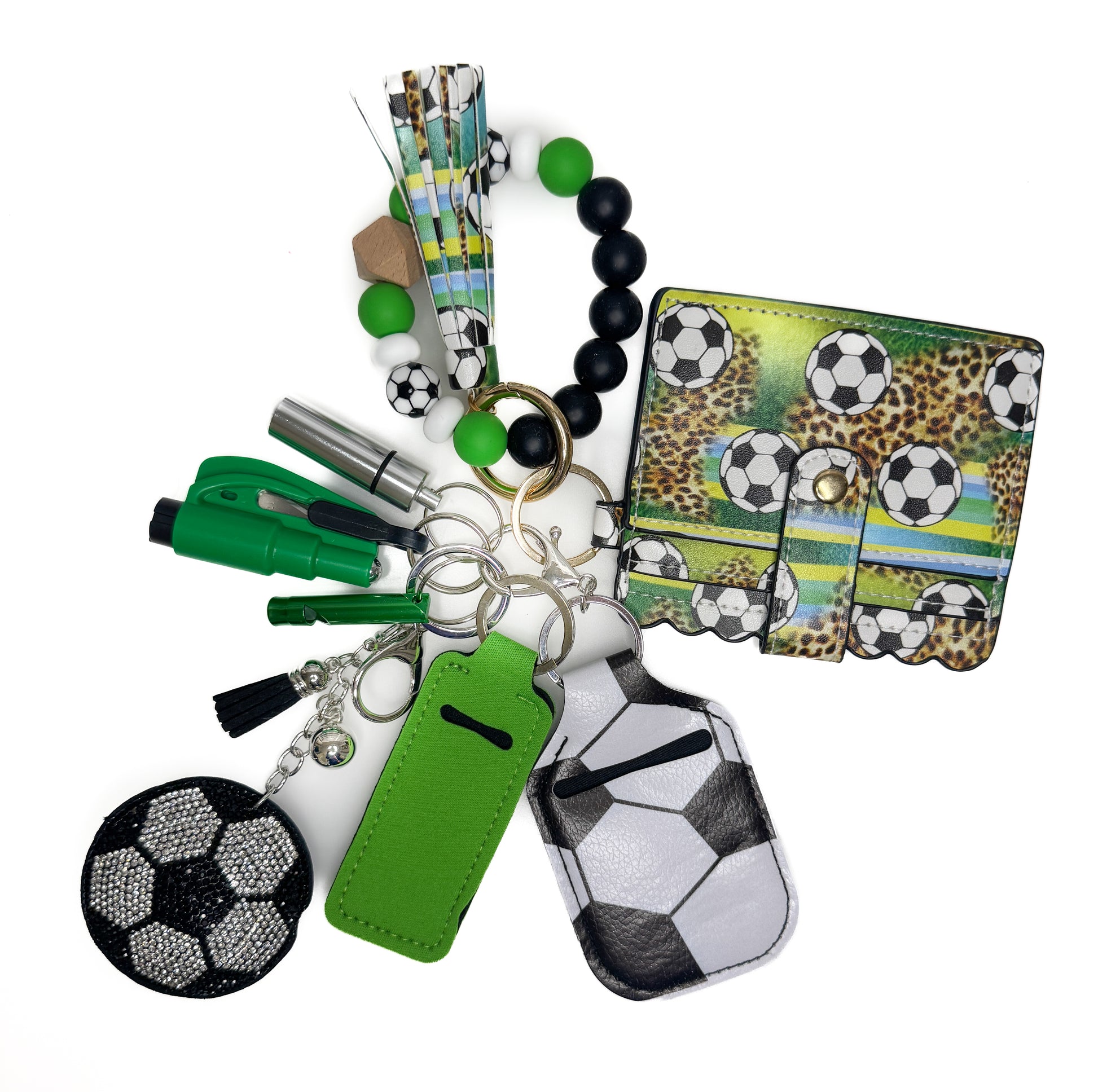 Two, Four, Six, Eight…what do we appreciate….SAFETY! We all know the sports life means you are a gal or guy on the go so this set was customized to make sure you could have what you need at arm’s reach! This set has exclusive sports design wallets and adorable beaded wristlets so you can be the ultimate fan! Leave a note to the seller if you would like to make this multi color and specify which pieces you would like in each color as we aim to promote individuality that reflects you! This eight piece set includes the following safety pieces: